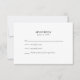 R.S.V.P. para elegância com nossa placa RSVP personalizada de casamento de fotos em preto e branco. A frente mostra a seção de preenchimento clássica, oferecendo uma maneira tradicional, mas sofisticada, de confirmar a presença. Sacudir-o, e um espaço fotográfico silencioso aguarda seu toque pessoal—imortalize um momento especial para compartilhar com o casal. Além disso, no verso, há espaço para o endereço do casal, onde esta placa maravilhosamente projetada será acolhida calorosamente. Elevem seus preparativos para o casamento com essa combinação saborosa de tradição e personalização, garantindo que cada RSVP não seja apenas uma confirmação, mas uma manutenção cuidadosa de sua jornada juntos.