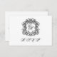 Esta elegante placa RSVP de casamento horizontal apresenta uma crista monográfica elegante com a caligrafia de script de rico para as iniciais da noiva e do noivo na frente, e a data de resposta e as seleções de menus no verso.