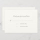 Uma elegante e sofisticada peça companheira de convite formal para o casamento: o cartão de resposta, que apresenta caligrafia elegante com fraquezas delicadas e um fundo branco pérola. Esta simples, clássica, carta de resposta de casamento tradicional é uma escolha encantadora para casais que adoram arte, designs de arte, arte única e original e designs de casamento tradicionais e formais. Personalize cada linha de texto. Itens correspondentes disponíveis.