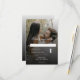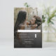 Torne a resposta fácil e elegante com esta placa RSVP de Foto Moderna e Sobreposição Negra, apresentando a foto do seu casal sob uma camada preta suave para um toque limpo e contemporâneo. Projetado com um layout simples, este cartão combina um roteiro elegante com uma tipografia moderna nítida para destacar sua data de "Responder gentilmente por" e os principais detalhes de resposta do casamento. Perfeito para um tema minimalista, esta peça de na moda de papel de carta de casamento garante que seus convidados respondam em estilo — enquanto adiciona um toque pessoal e memorável à sua suíte de convites.