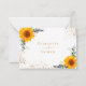 Um fundo branco decorado com girassóis, eucalipto verde e folhas de ouro e falsa brilho de ouro, faíscas. Personalize e adicione a resposta por data e seus nomes.