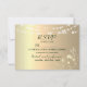 Aceite a combinação perfeita de elegância e encanto rústico com nosso cartão de RSVP verde esmeralda e ouro. Adorado com luzes encantadoras de cordas, rendas florais vintage boho e script de caligrafia moderno, este cartão combina lindamente a sofisticação do país com um toque de romance vintage para o seu dia especial.
