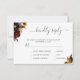 Cartão RSVP de na moda de casamento floral rústico moderno com opções de refeições modelo com um belo buquê burgundy de outono e laranja enferrujado com folhas e folhagem secas e um roteiro elegante de caligrafia.