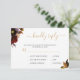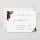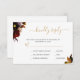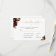 Cartão RSVP de na moda de casamento floral rústico moderno com opções de refeições modelo com um belo buquê burgundy de outono e laranja enferrujado com folhas e folhagem secas e um elegante roteiro de caligrafia em ouro.