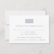 Leek, chic e moderno, estes cartões de resposta ao casamento ultra modernos apresentam "RSVP" definido em um elemento retangular em cinzas de ardósia leves subdeclaradas. Adicione a data de RSVP desejada, aceite e recuse a redação, e as preferências de refeição ou entrada na cinza de carvão moderna sans serif lettering. Cartões invertem para um padrão-chave grego moderno opcional.