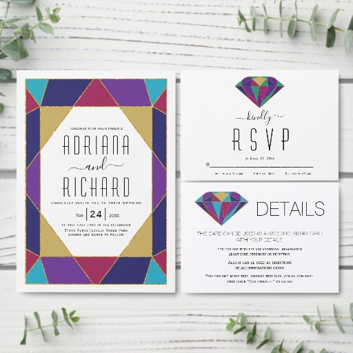 Abstract jewel color blocks wedding invitations Criado por Modern Designs