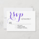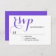 O cartão RSVP de resposta ao casamento de na moda moderno é feito em branco com texto personalizado preto e roxo. Personalize o campo de data do seu dia especial. Excelente para qualquer ocasião especial.