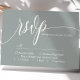 Deixe seu amor florescer com um toque de simplicidade elegante. Este cartão verde de RSVP empoeirado apresenta uma fonte moderna de escrita caligráfica, acrescentando um toque de graça eterno à sua papelaria de casamento. O design minimalista mantém o foco nos detalhes de RSVP, garantindo uma resposta clara e na moda dos seus convidados. Complementando perfeitamente o seu tema de casamento minimalista, esta versátil carta RSVP se mistura facilmente com estética romântica, chica, moderna ou sofisticada. Personalize-o com seus nomes e detalhes de casamento para criar um pacote de resposta coesa para seu dia especial.