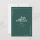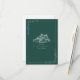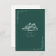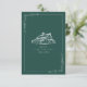 RSVP de Casamento com ilustração de celeiro com fronteira botânica. O fundo é esmeralda verde.