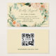 Placa RSVP moderna de pequeno porte para cartão comercial com código QR que permite aos convidados responder facilmente ao seu convite em estilo elegante. Este adorável cartão de resposta inclui tons pastéis macios e florais aquosos modernos verdes em tons de pêssego, branco, marfim creme, sábio e verde mais brilhante. Este convite de casamento personalizado coordena-se com nossa coleção floral de cheio botânico de artigos de papelaria, decoração e papel de evento.
