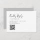 Um cartão de casamento RSVP de código QR com simples letra preta.