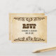 Este convite de casamento estilo ocidental RSVP faz parte da Coleção de Casamentos de Tema Ocidental da Music City Tee e apresenta um fundo de pergaminho marrom rústico com fontes no estilo ocidental. Este cartão RSVP pode ser personalizado para atender às suas necessidades individuais de cerimônia de casamento.