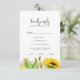 Este cartão RSVP de escolha de girassol é perfeito para um casamento rústico. O clássico design moderno apresenta lindas flores silvestres amarelas brilhantes, com uma vintage no verão ou tema de outono. Este cartão de resposta do casamento convenientemente pergunta aos hóspedes qual refeição eles gostariam na sua recepção.