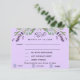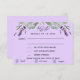 Um fundo violeta, texto preto. Decorado com flores de lavanda e verde de eucalipto. Personalize e adicione a resposta por seleção de data e menu. Voltar: Cor de fundo violeta.