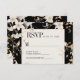 Cartão RSVP Design da Flor Branca Elegante no Casamento Negro
