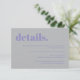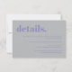 Cartão RSVP detalhes do casamento de prata de lavanda simples