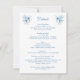 Apresentando um elegante cartão Detalhes do casamento com flores azuis de cor d'água. . Eles são uma amável combinação com nossos convites de casamento e cartões de oração na coleção de casamento dos Essenciais de Casamento Católicos. Todo texto e fontes podem ser modificados.