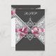 Convite de aniversário de 16 anos com diamantes brancos laço rosa sobre damasco preto RSVP. Festa de aniversário de dezesseis anos com damasco rosa e preto RSVP. Adicione seus detalhes na frente e no verso simplesmente escolhendo o botão "Personalize!" para começar a adicionar os detalhes do seu evento, estilo de fonte, tamanho e cor da fonte e texto. Por favor, note que todos os desenhos de convites que você encontrará na Zazzle são gráficos impressos em papel liso sem joias, laços, relevos, rebaixos ou peças ou partes adicionadas.