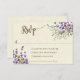 Um belo boho lavanda de flores de design num fundo de marfim. Use esta placa RSVP coordenada para encorajar seus convidados a responder prontamente! Edite os campos de texto disponíveis para atender às suas necessidades, para criar a suíte de casamento perfeita. Outros artigos e artigos de papelaria desta coleção, como autocolantes, cartões de informação, mesas, etc. Perfeito para casamentos e chás/eventos em qualquer época do ano. Um design muito elegante.
