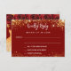 Frente: Um fundo vermelho decorado com falso brilho dourado, faíscas. Personalize e adicione seu nome e datas. Trás: um vestido de ouro e rosas vermelhas.
