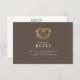 Cartão RSVP Dourado monograma, refeição marrom, opção de casam