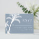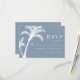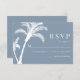 Cartão RSVP Dusty Blue Tropical Palm Tree Beach Weding