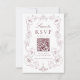 Cartão RSVP Elegant Burgundy Ornate Floral QR Code Wedding