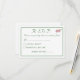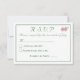 Design front features an elegant heading displayed at top in a lovely forest green color displayed against a white background. The images of the Sacred and Immaculate Hearts of Jesus and Mary are pictured at right. Your text is featured in the traditional format for a Catholic response card. Entire design is framed with an elegant matching border.