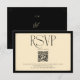 This elegant RSVP card features a sophisticated cream background with a large, modern 'RSVP' in black serif font. Below the text, a QR code is prominently displayed, making it easy for guests to scan and RSVP via your wedding website. The design also includes a clear call to action and your wedding website URL. This minimalist and chic design is perfect for couples seeking a modern and convenient way to manage their guest list. The clean layout and classic typography ensure a timeless feel, while the QR code adds a practical touch for a seamless guest experience. Make it easy for your loved ones to confirm their attendance for your special day with this stylish and functional response card.