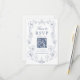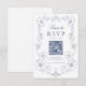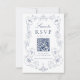 Cartão RSVP Elegant Navy Ornate Floral QR Code Wedding