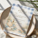 A refined coastal wedding design featuring an elegant oval wreath of seashells, oyster shells, starfish, and soft sea glass accents. Neutral sandy tones blend with muted ocean blues and delicate dune grasses to create a serene seaside aesthetic. The warm parchment background enhances the natural textures while maintaining a timeless, elevated feel. Perfect for a romantic beach celebration with classic coastal charm.
