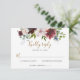 Cartão RSVP Elegante Floral Naval Borgonha com Verde Casamento