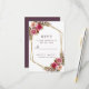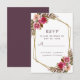 Cartão de resposta de casamento elegante e formal Chic Cassis apresenta um romântico floral em aquarela com folhagens verdes em um fundo branco crocante. Uma moldura geométrica em forma de cristal com brilho dourado proporciona um toque moderno. A redação tradicional e clássica fornece sofisticação atemporal. Personalize o cartão de informações de resposta para seus convidados com letras e caligrafia em roxo cassis elegante. O verso do cartão é um roxo cassis elegante sólido, completando o design. Sinta-se à vontade para entrar em contato comigo em invitationsuitesgmail.com se tiver dúvidas sobre este ou qualquer outro design.
