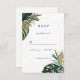 Cartão RSVP Elegante, Palma Verde, Borda Dourada (Imitação)
