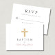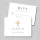 Cartão RSVP Elegante Rosa Poeirento Religioso Madeira Menino B