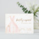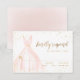 Cartões de RSVP de Quinceanera elegantes apresentam vestido rosa com detalhes de brilho dourado, ótimo para festa de 15 anos.