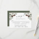 Esta elegante placa RSVP de pinho de pinho casamento no inverno é perfeita para um feriado ou casamento no inverno elegante. O design apresenta belas flores brancas de aquarela com pinheiros em cones, e verde florestal em verde-sábio, branco e castanho. Este é um esquema de cores perfeito para um casamento no inverno. Faça deste cartão de resposta seu próprio incluindo seus nomes e todos os detalhes do seu casamento. Para mais personalização, use a ferramenta design avançada para modificar este modelo.