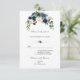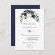 Cartão RSVP Elegantes Flores de Blush Azul Naval Dourado em Fl