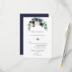Design encantador de cartão com buquês de flores de água rosa e azul naval, em fundo branco; no verso, fundo azul meia-noite e um buquê floral. Use a ferramenta Personalizar para adicionar suas informações e fazer alterações. Para itens correspondentes, visite minha Coleção Floral Azul Naval Blush.