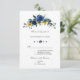 Cartão RSVP Elegantes Girassóis Flores Azuis Marinho Casamento