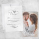 Nossos elegantes cartões de resposta de escolha de refeição RSVP de caligrafia preta e branca apresentam um design atemporal. Contra um fundo branco, fontes e elementos pretos criam uma aparência sofisticada. O verso mostra um modelo de foto personalizável, juntamente com os nomes do casal e a data do casamento em caligrafia correspondente - perfeitamente coordenados com os nossos convites de casamento. Este cartão de RSVP de casamento com caligrafia minimalista simples combina tendência com estilo. Personalize-o com as suas informações de RSVP para refletir as suas preferências únicas. Eleve a sua papelaria de casamento com este design moderno, garantindo que cada detalhe seja memorável.