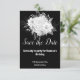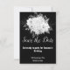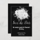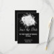 Elegante FUNDO BRANCO E PRETO REVERSO AMBOS CAPTURANDO E BONITO com um cartão de salvar a data de buquê floral deslumbrante anúncios de festa convites personalizáveis designs exclusivos