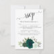 Esta bela placa RSVP apresenta um design simples, mas elegante, com um aglomerado de rosas de aquarela pintados manualmente e verde em tons de esmeralda e sábio verde. O título está escrito em uma caligrafia antiga e há espaço para seus hóspedes indicarem o número total de participantes e a escolha da refeição.