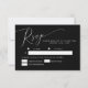 Cartão RSVP de casamento elegante e mínimo com um texto moderno no topo, em um fundo preto. Este simples design funcionará em qualquer estação. O cartão também inclui opções de refeição para os convidados a selecionar.