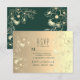 Convite de RSVP de casamento vintage, elegante, boho floral com folha de ouro e verso em verde esmeralda com escolha de comida.