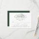 Ponha o tom para a sua celebração rústica com estes cartões RSVP de casamento elegantes, apresentando uma ilustração verde da floresta de um celeiro no topo, sobre um fundo branco limpo. Personalize as placas RSVP de celeiro esboçadas com a data de resposta desejada, o personalizado aceita/declina a redação e as opções de refeições. Perfeito para casamentos de campo, celeiro ou de fazenda.