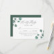Cartões RSVP de casamento Elegantes, eucaliptos, com a data de resposta desejada e opções de janto com os arranjos de eucalipto verde poeirento e poeirento nos cantos. A carta de resposta do casamento botânico se reverte para um sólido fundo verde escuro. Projetado para coordenar com a nossa coleção de casamentos de Eucalyptus Greenery Moderno.