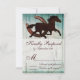 Um cartão de resposta de casamento russo com um design de madeira estampada rústica e um cavalo e ferradura no topo do convite. Completamente personalizável com seus próprios detalhes. Estes anúncios de casamento são perfeitos para um casamento temático de vaqueiro. Aqui estão alguns convites de casamento personalizados diferentes: