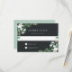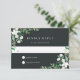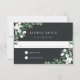 Projetado para coordenar com nossa coleção de casamento de Estufa, esta elegante carta de RSVP botânica apresenta fontes de folhagem verde de aquarela e pequenas flores brancas nos cantos, em um fundo preto e rico. Personalize com a data de RSVP desejada e aceite/recuse a redação.