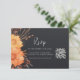 Esta delicada placa RSVP de Código QR de Queda Floral Negra de Casamento Negra apresenta um design de cor d'água floral hiper em tons de terra rústica, incluindo terracota, laranja queimada e outras matizes do outono, perfeito para um casamento outono luxuoso. Projetada com uma reviravolta contemporânea, esta carta exude sofisticação e estilo, garantindo que não seja apenas uma formalidade, mas uma manutenção acarinhada. O código QR integrado permite que seus convidados respondam rapidamente ao seu convite de casamento. A combinação contínua de elementos tradicionais e modernos faz com que esta placa seja a escolha ideal para os casais que procuram um toque único e memorável no seu dia especial. Use a ferramenta design para alterar o tamanho do texto, as cores, os estilos de fonte e o posicionamento ao seu gosto. Para itens correspondentes, consulte a coleção Black Floral Wedding.